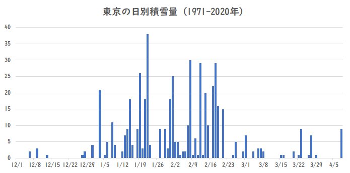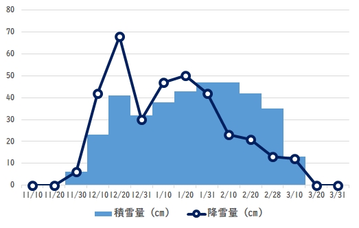 最も雪が降ったのは12月11日から20日の期間で68cm。